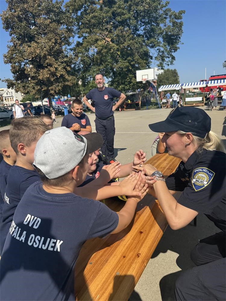 Umjesto ozbiljnih zadataka, policijski službenici i mali vatrogasci okušali su se u posebnim disciplinama: odmjeravanju snage u obaranju ruku i natjecanju tko ima glasniju sirenu na vozilu.